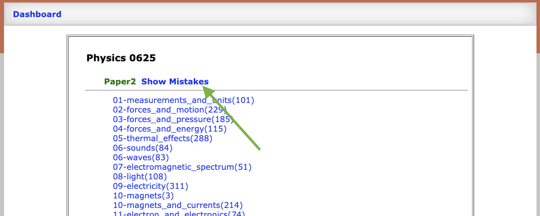 Click on "Show Mistakes" for quick review of all your mistakes.